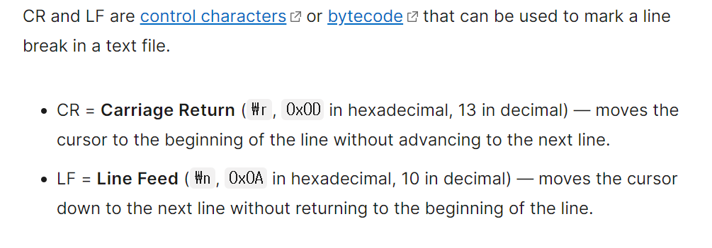MDN 공식 문서에서 제공하는 LF와 CRLF에 대한 설명은 다음과 같다.