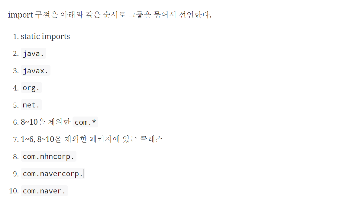 - import 선언의 순서와 빈 줄 삽입의 순서대로 지정
