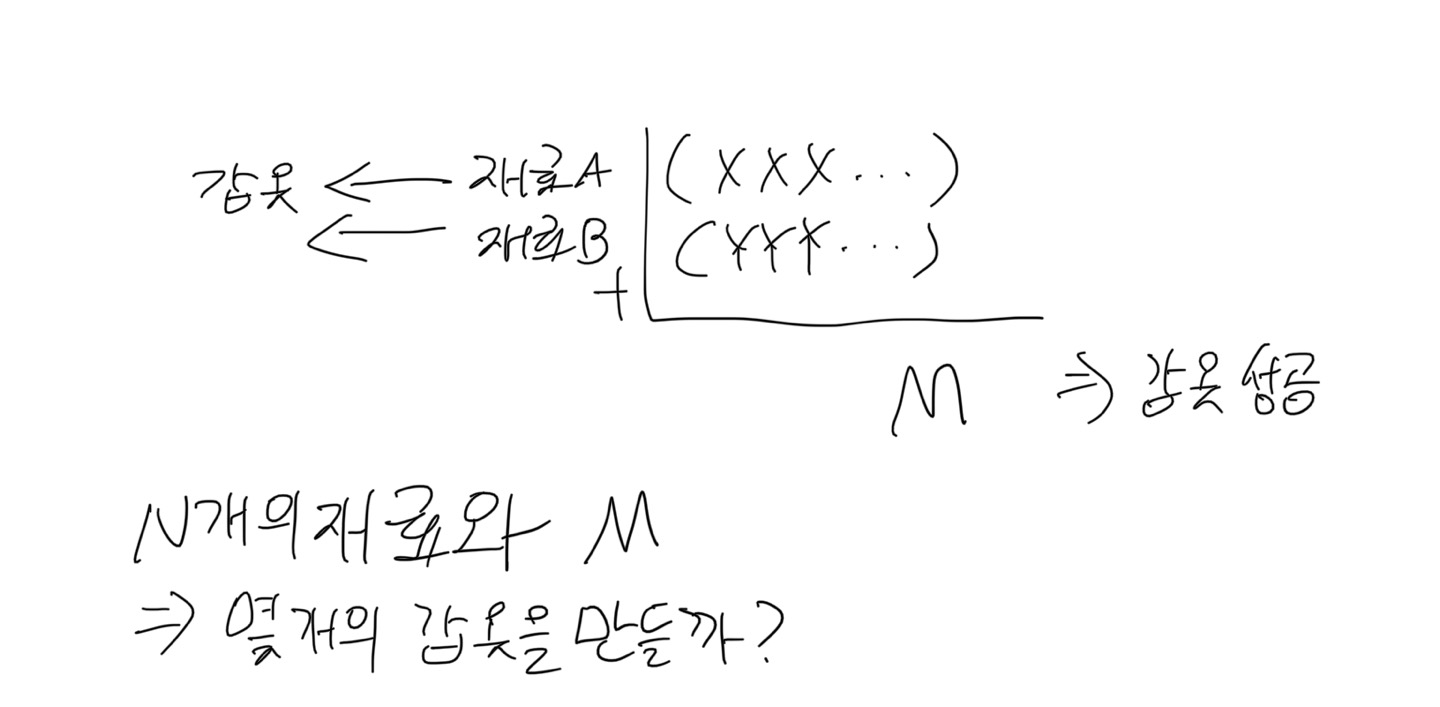 재료들은 랜덤하게 주어지지만 정렬하여 문제를 푼다면 투포인터를 이용해서 풀 수 있다.