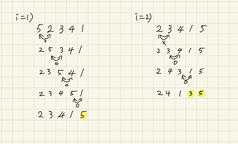 for (int i = 0; i < N - 1; i++) { // 마지막 정렬이 되면 더이상 볼필요가 없기 때문에 N - 1
