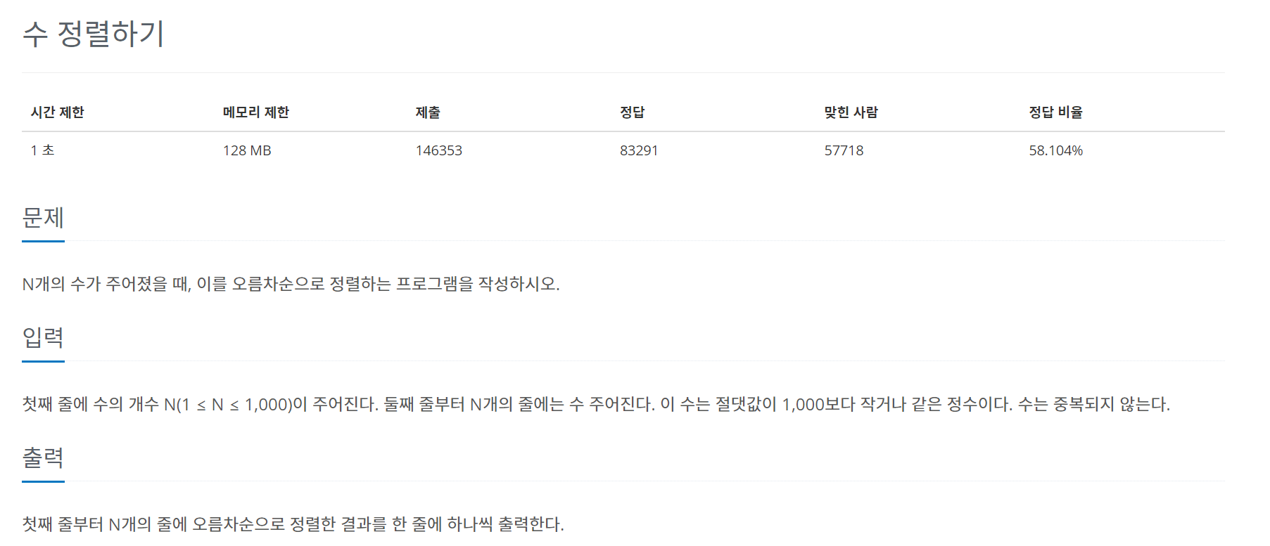 N개의 수가 주어졌을 때, 이를 오름차순으로 정렬하는 프로그램을 작성하시오.