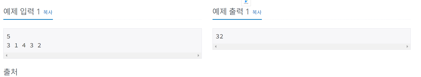 첫째 줄에 사람의 수 N(1 ≤ N ≤ 1,000)이 주어진다. 둘째 줄에는 각 사람이 돈을 인출하는데 걸리는 시간 Pi