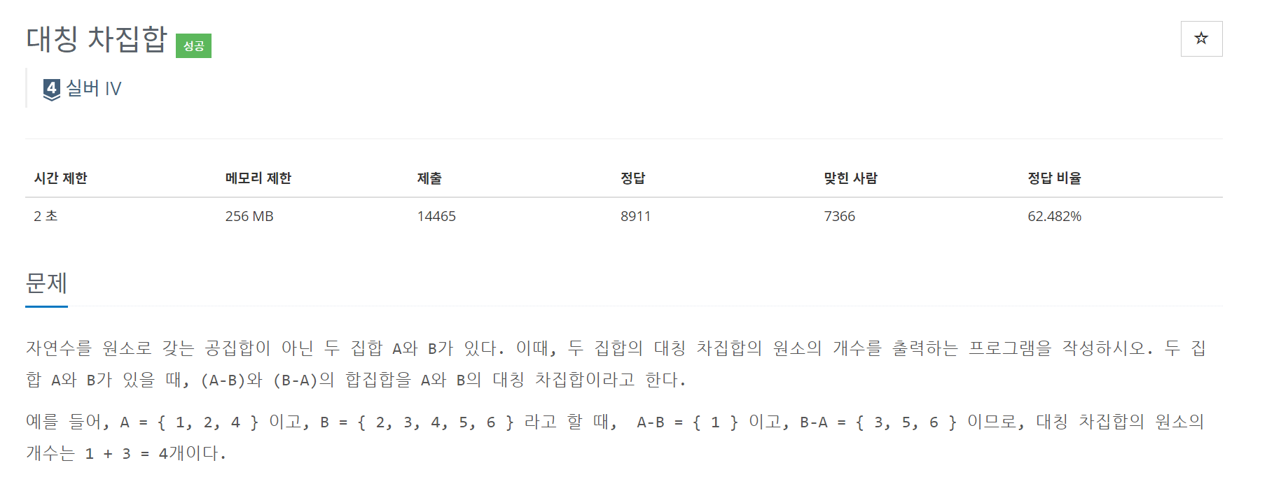 첫째 줄에 대칭 차집합의 원소의 개수를 출력한다.
