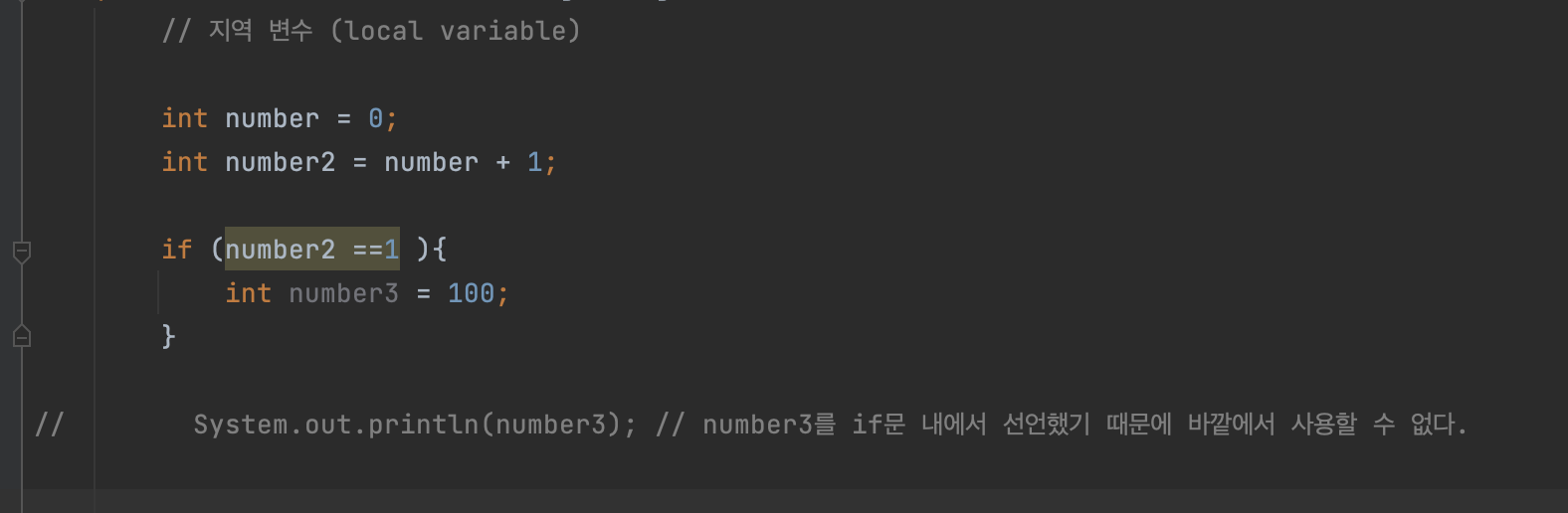0. 지역 변수란 : 특정 블록, 메서드 내에서 선언된 변수 (메서드 밖 : 멤버 변수)