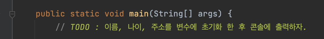 - 키워드 (예약어) : (주황색 색깔) 자바의 문법적 의미를 이미 갖고 있음