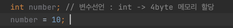 - 변수를 사용하기 위해서는 먼저 선언을 해야 함