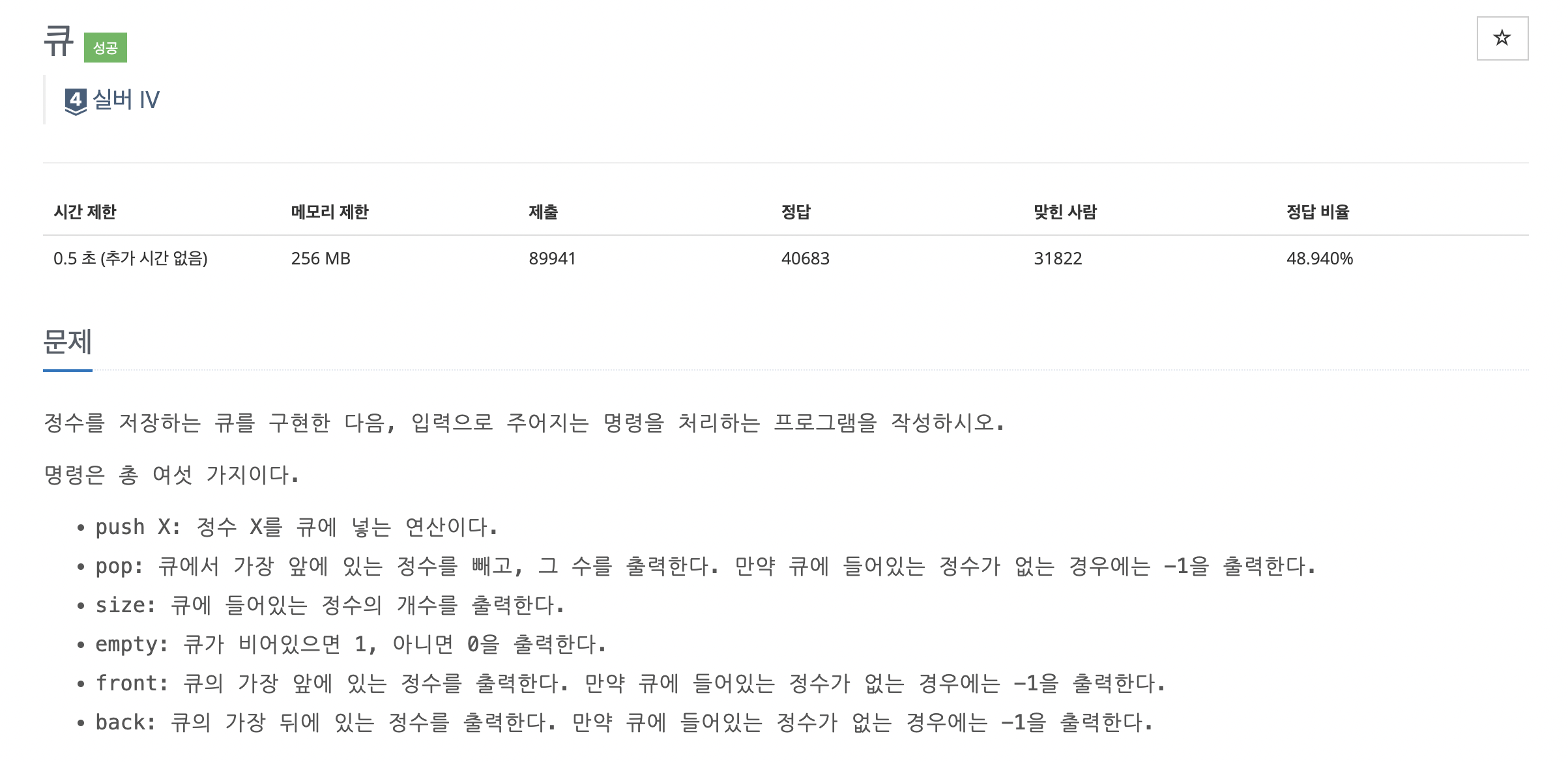 정수를 저장하는 큐를 구현한 다음, 입력으로 주어지는 명령을 처리하는 프로그램을 작성하시오.