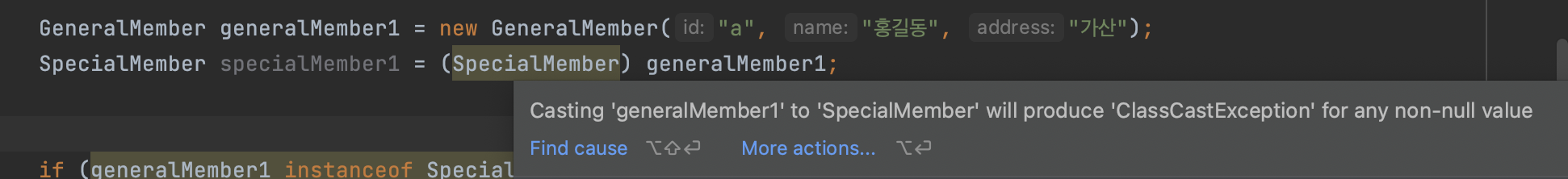 SpecialMember specialMember1 = (SpecialMember) generalMember1;