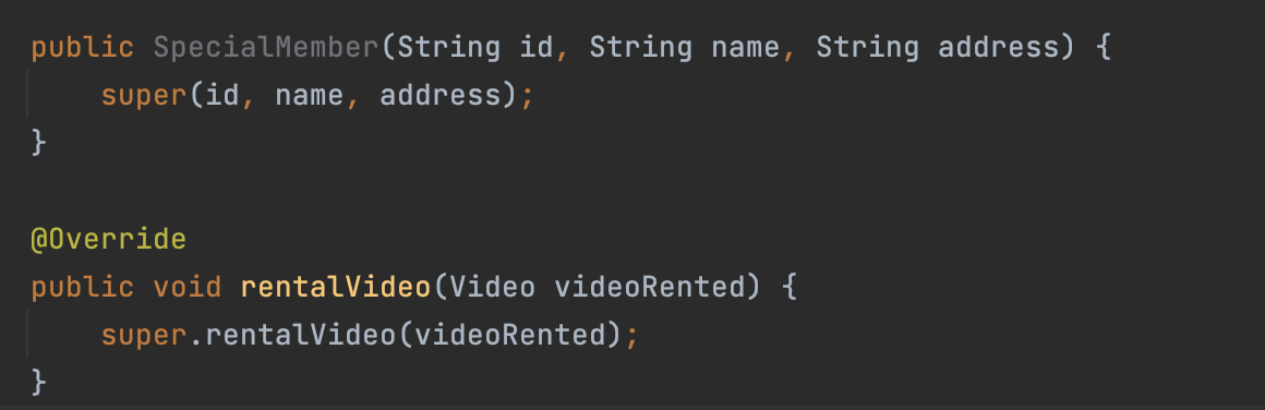 overriding method에서 사용하는 super => 다시 부모의 메서드를 호출하고 싶을 때 (this => super)