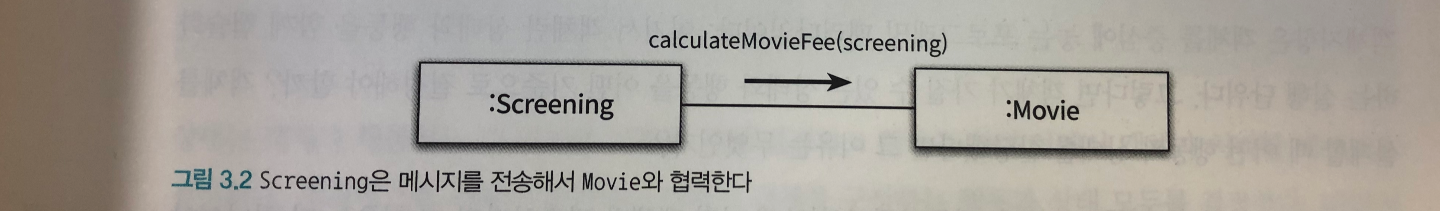 다양한 객체들이 영화 예매라는 기능을 구현하기 위해 메시지를 주고받으면서 상호작용한다는 점이다. 이처럼 객체들이 애플리케이션의 기능을 구현하기 위해 수행하는 상호작용을 협력이라고 한다. 객체가 협력에 참여하기 위해 수행하는 로직은 책임이라고 부른다. 객체들이 협력 안에서 수행하는 책임들이 모여 객체가 수행하는 역할을 구성한다.