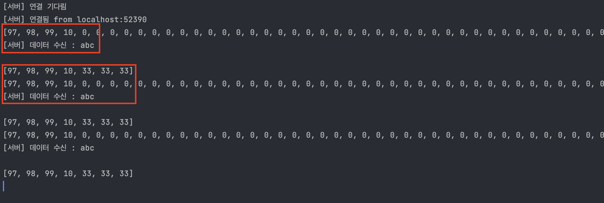 System.out.println("[서버] 데이터 수신 : " + dataReceived);
