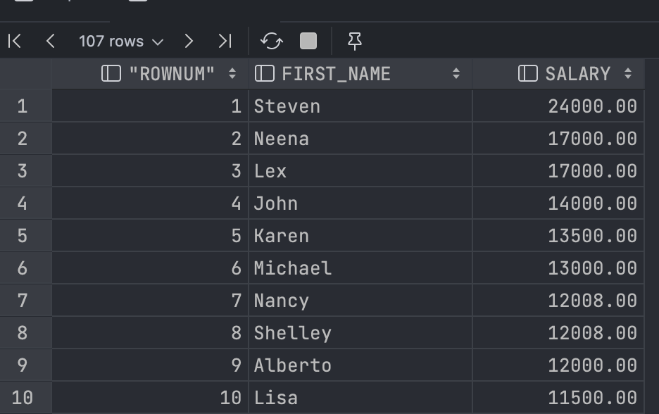 : 질의의 결과에 가상으로 부여되는 oracle의 가상의 column (일련번호)