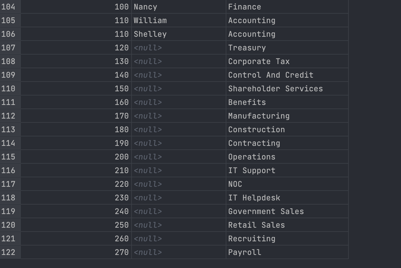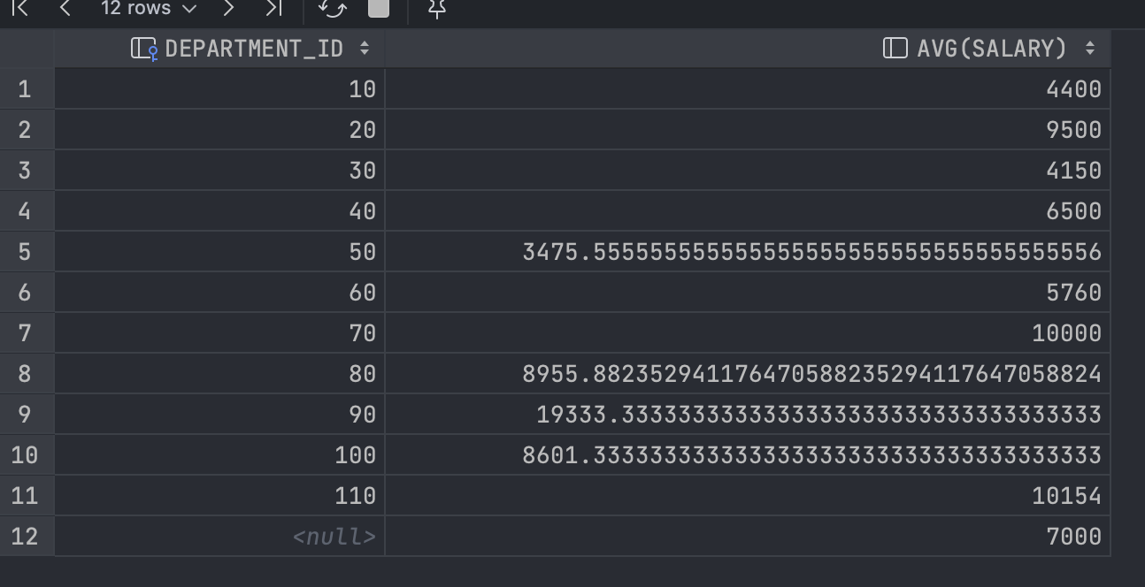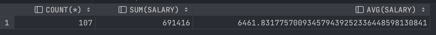 department_id는 107건이 나오지만 avg는 집계함수이기 때문에 한 개가 나온다