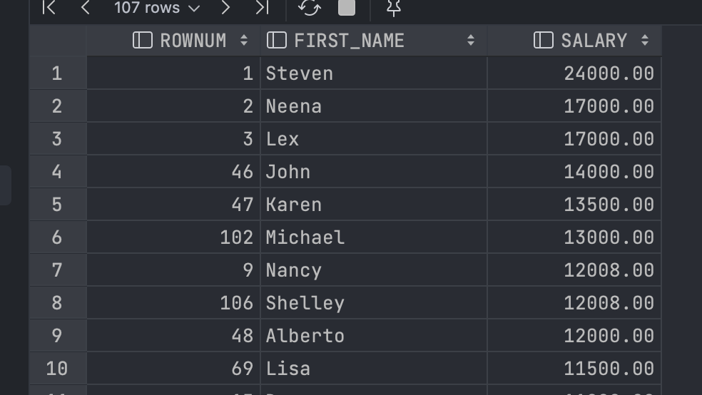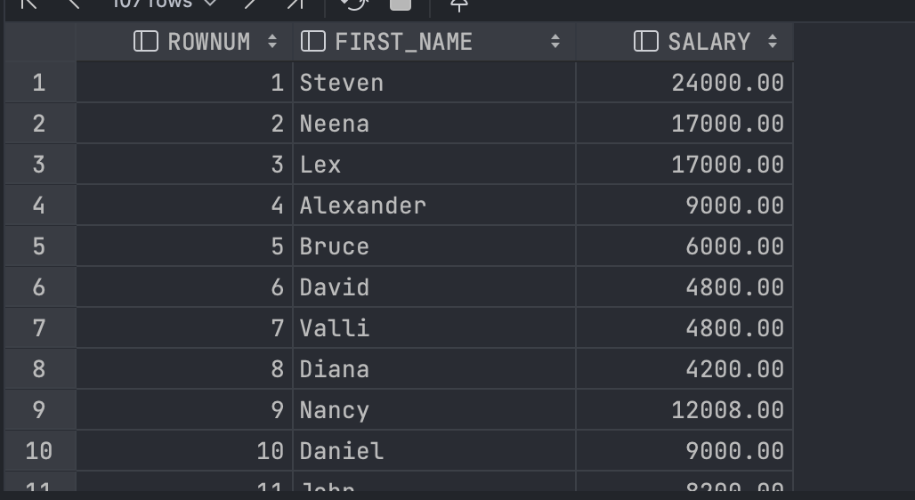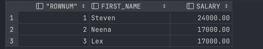 SELECT EMPLOYEE_ID, FIRST_NAME, SALARY