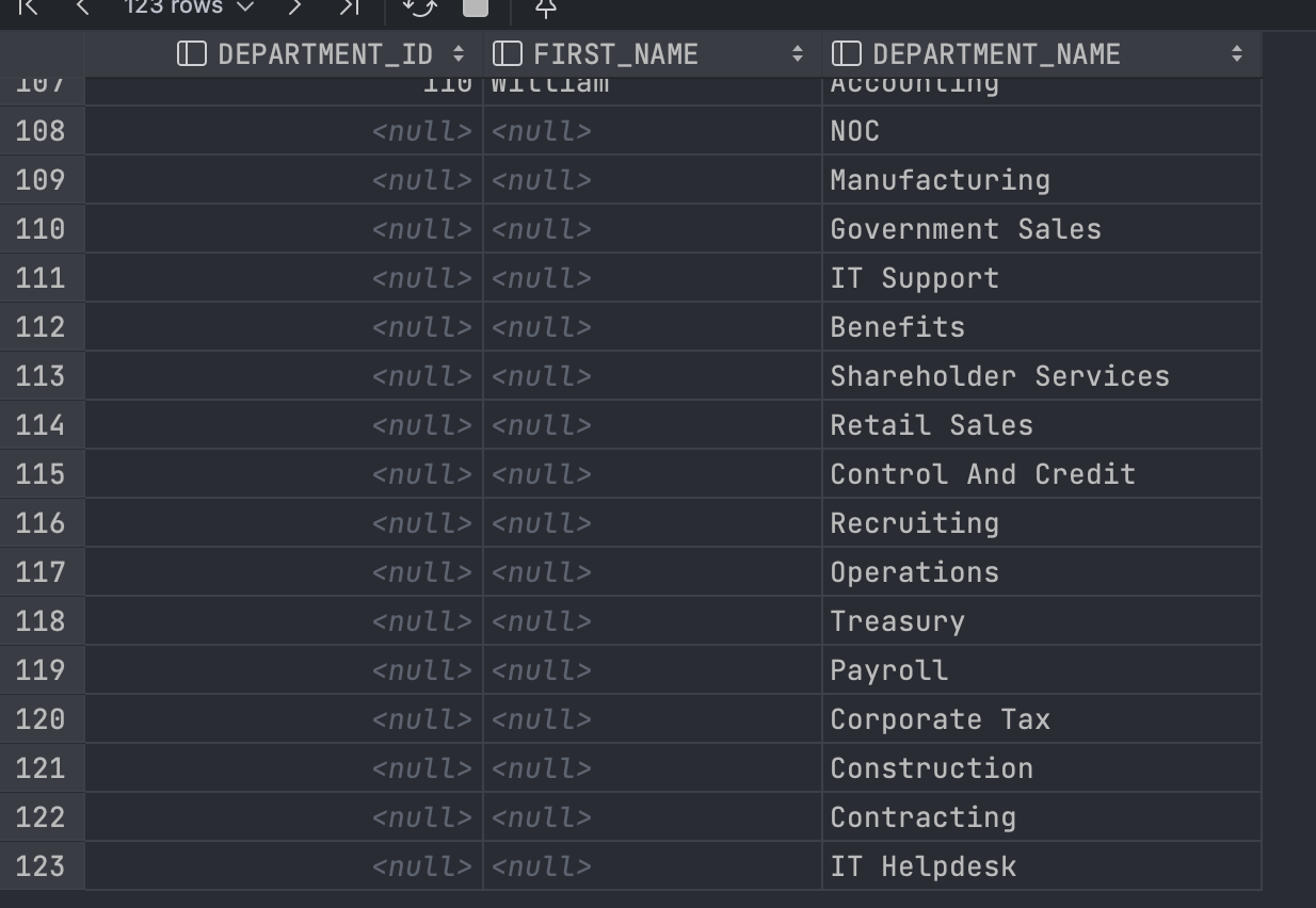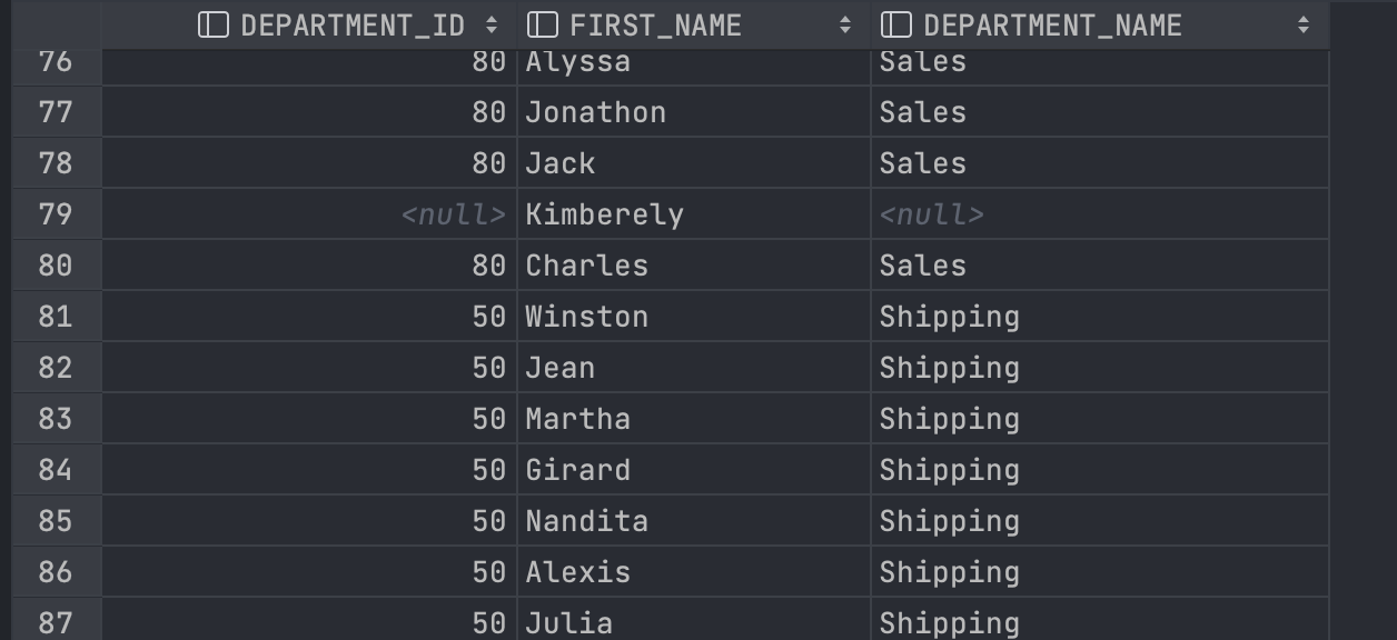 where EMPLOYEES.EMPLOYEE_ID = DEPARTMENTS.DEPARTMENT_ID;