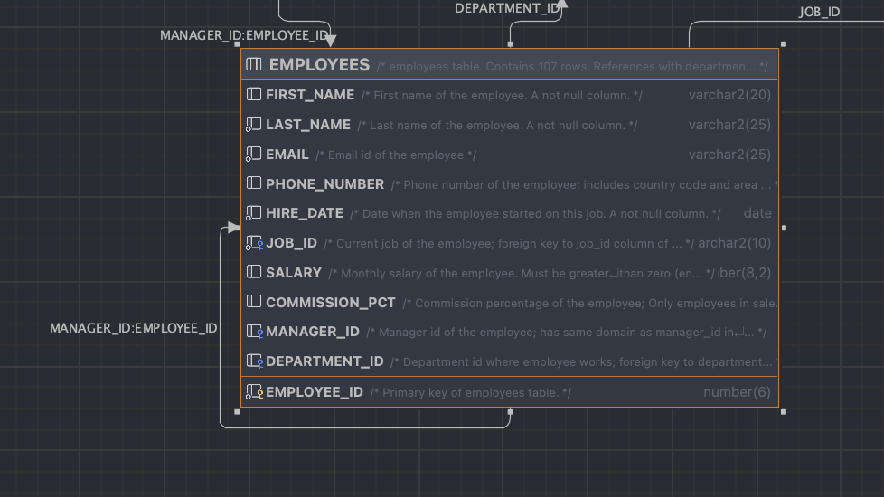 where EMPLOYEES.JOB_ID = JOBS.JOB_ID;