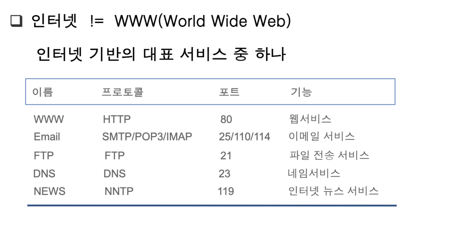www : 전 세계 인터넷상의 콘텐츠를 연결, 공유할 수 있는 인터넷 기반 서비스