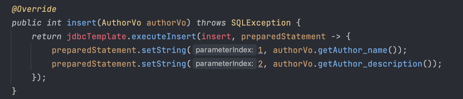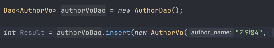 AuthorDao는 AuthorVo 타입을 인자로 한 구현을 실행한다.