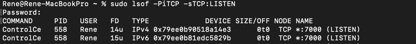 sudo lsof -PiTCP -sTCP:LISTEN