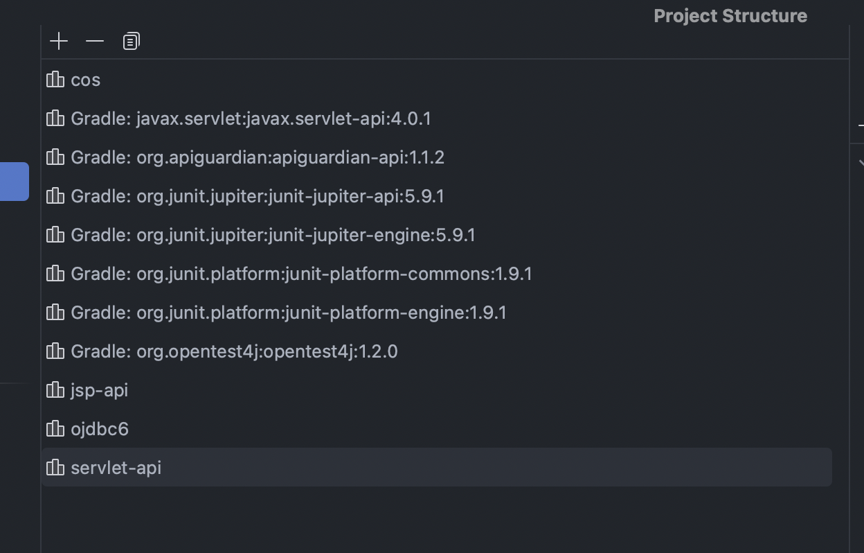 외부 라이브러리에 cos와 톰캣의 라이브러리를 의도적으로 추가해주면 된다.