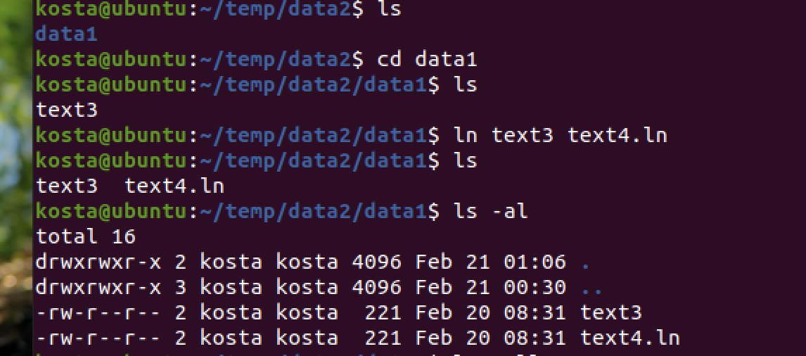 - 파일 링크는 기존에 있는 파일에 새로운 파일명을 붙이는 것