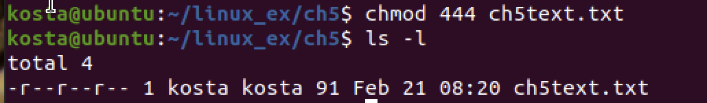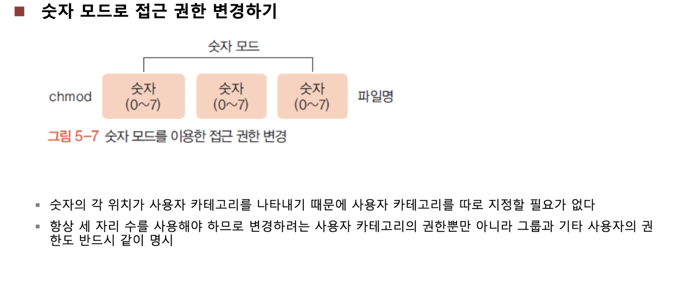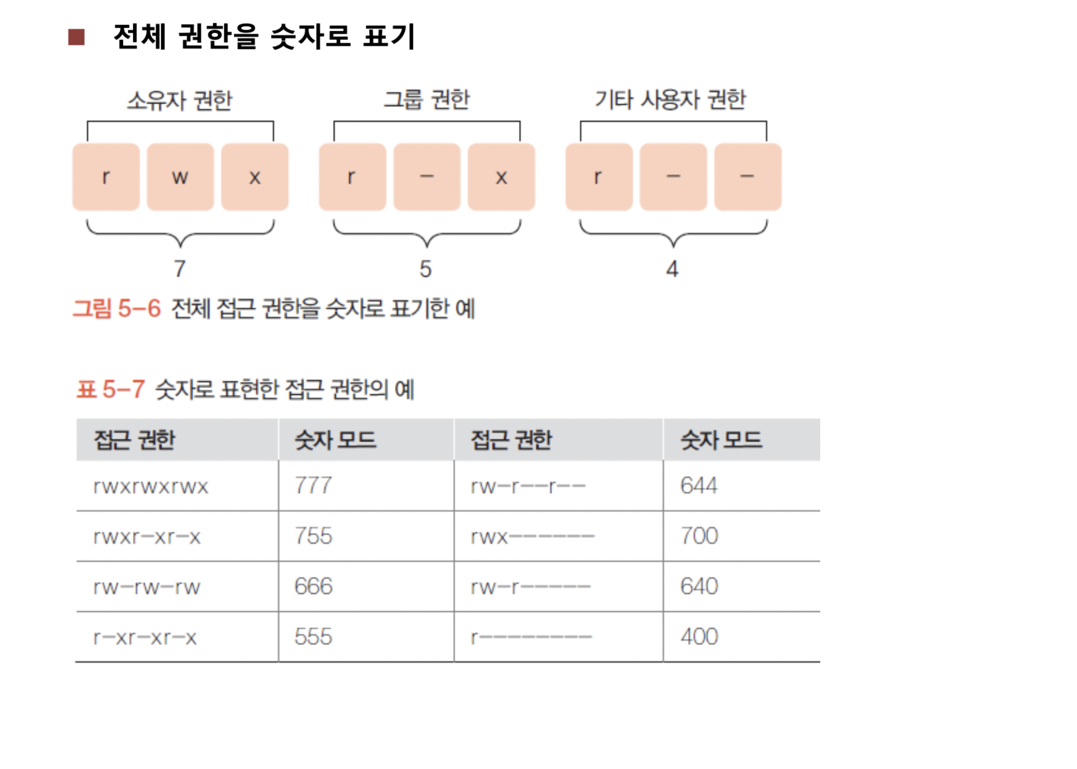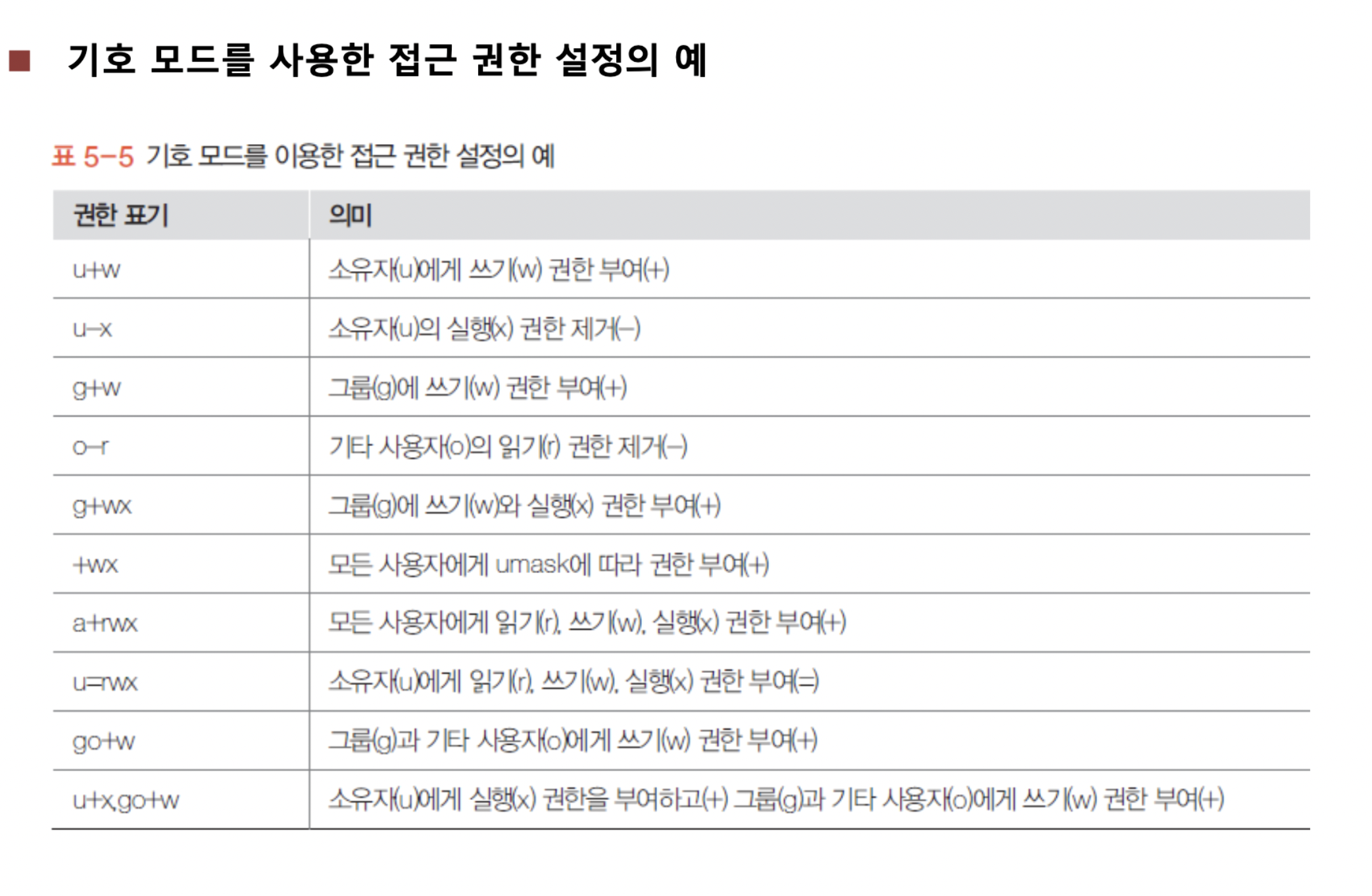 읽기 권한은 r, 쓰기 권한은 w, 실행 권한은 x로 나타내며, 해당 권한이 없는 경우에는 -로 표기