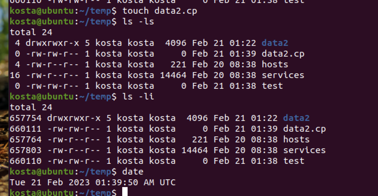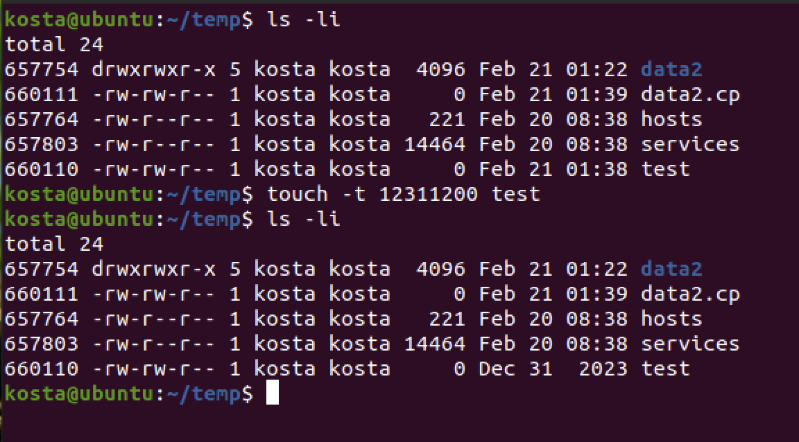 빈 파일 생성하기, 수정 시간 변경하기 : touch