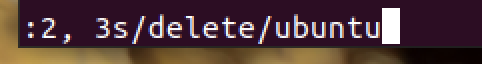 2~3행 사이의 delete를 ubuntu로 바꾸는 명령