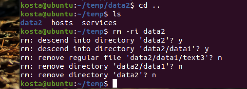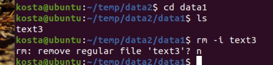삭제 할 때 i 옵션 사용하면 의도를 묻는다