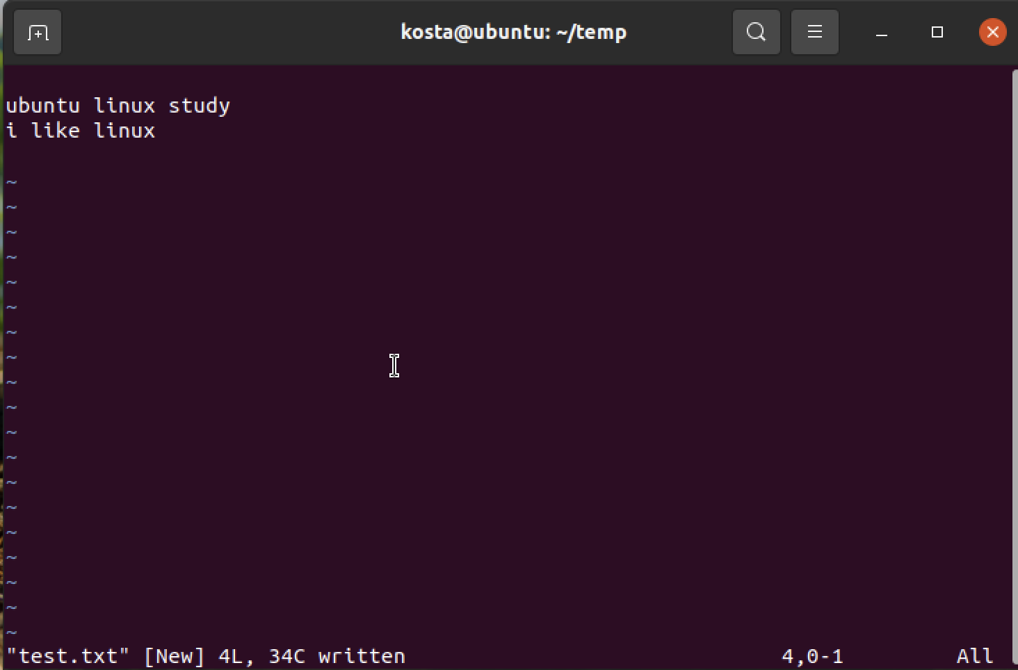 - 기존의 문자열을 다른 문자열로 바꾸려면 먼저 :을 입력하여 마지막 행 모드로 이동