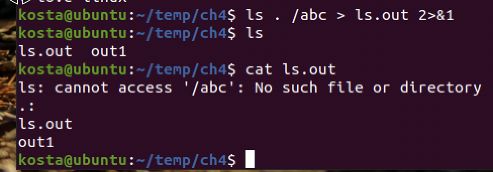 표준 출력과 표준 오류를 한 파일로 리다이렉션하기