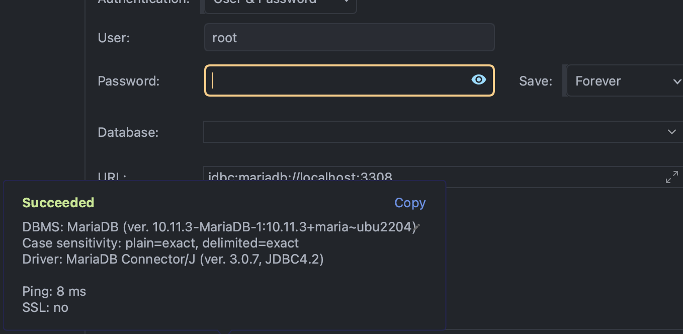 도커 컴포즈를 이용해 mariaDb를 생성하고 jdbc 혹은 datagrip을 이용해 접속하려고 했을 때 아래와 같은 에러가 발생했다.