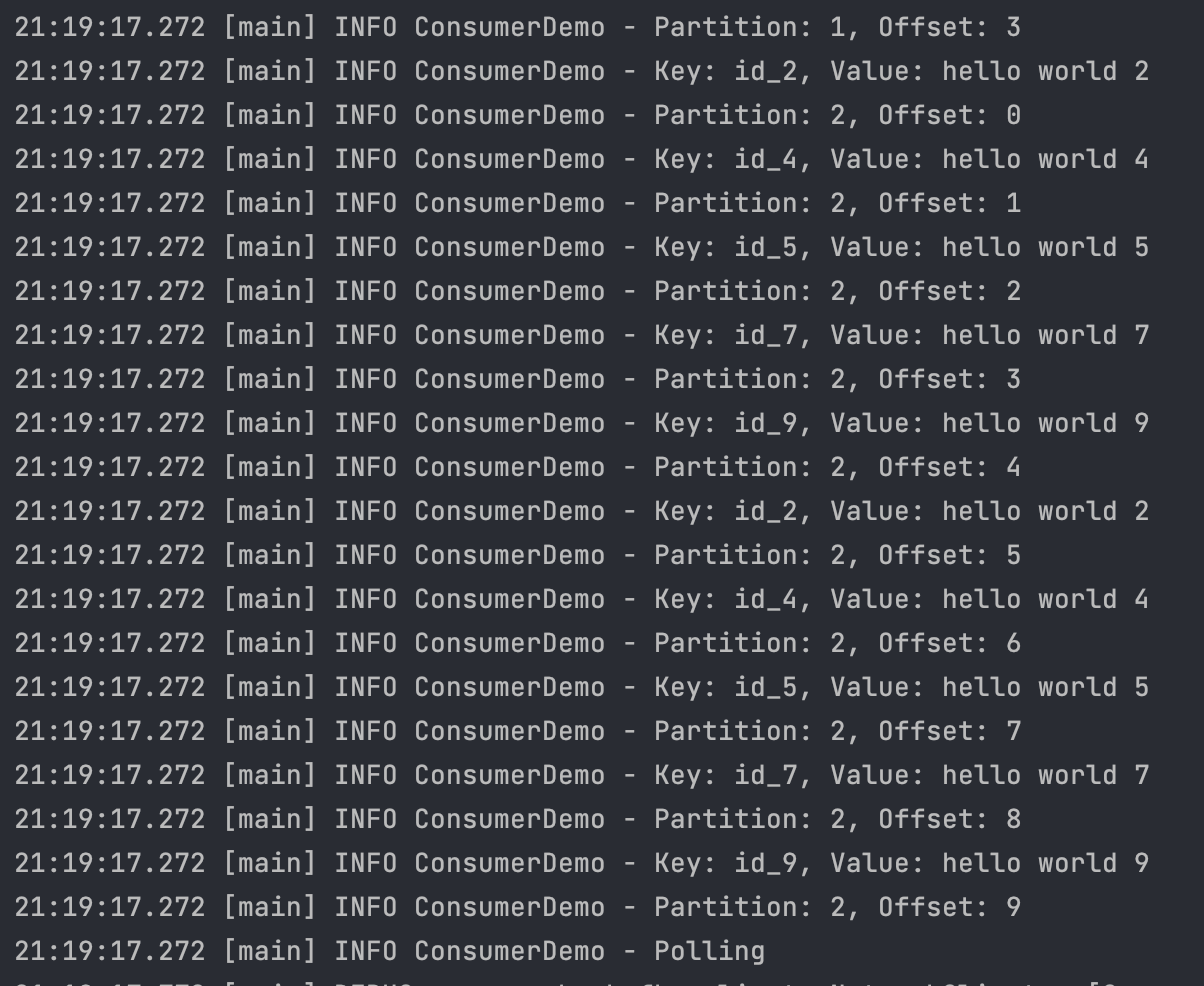 log.info("Partition: " + record.partition() + ", Offset: " + record.offset());