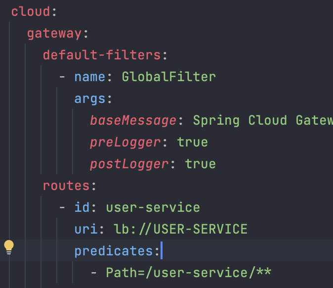 => /user-service 가 들어오면 //lb -> USER-SERVICE 로 포워딩