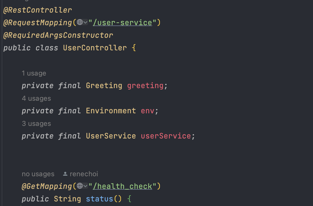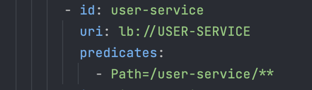 처럼 마이크로 서비스를 인식해주는 식별자로서 "user-service"라는 prefix가 필요했다.