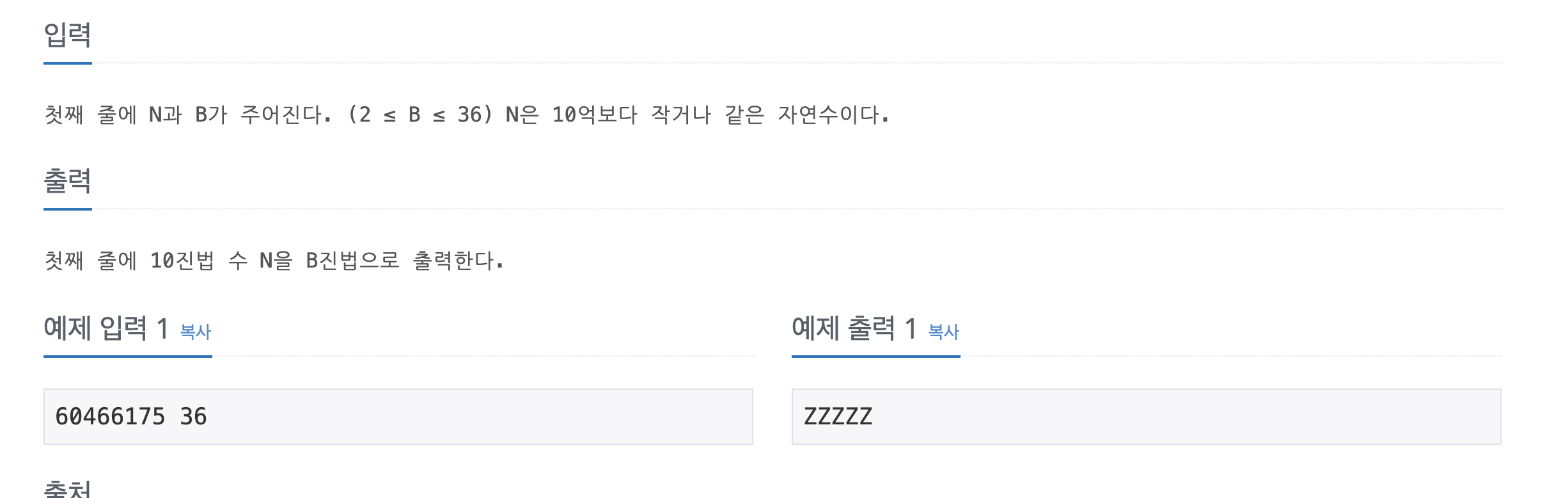 백준 11005 진법 변환 2 (JAVA 자바 풀이)