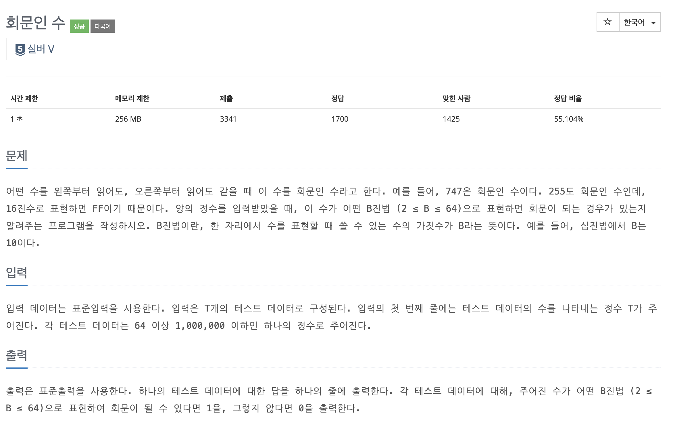 백준 11068 회문인 수 (JAVA 자바 풀이)