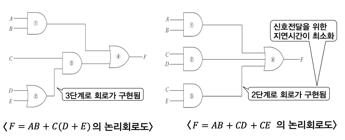소자의 개수는 차이가 없지만 입력이 들어왔을 때 단계가 다르다.