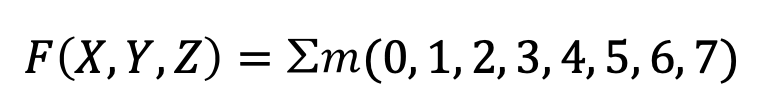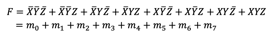 만약 어떤 함수가 최소항으로 표현되었다고 한다면 => OR 결합으로 되었다는 것을 의미