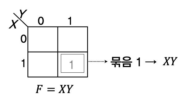 - 사각형은 각각 하나의 최소항 또는 최대항을 의미