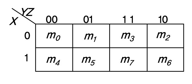 3개의 변수의 경우 다음과 같이 카르노 도표를 그린다.