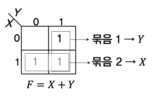 - 최소항 또는 최대항들이 차지하는 도표 내의 면적을 이용하여 간소화