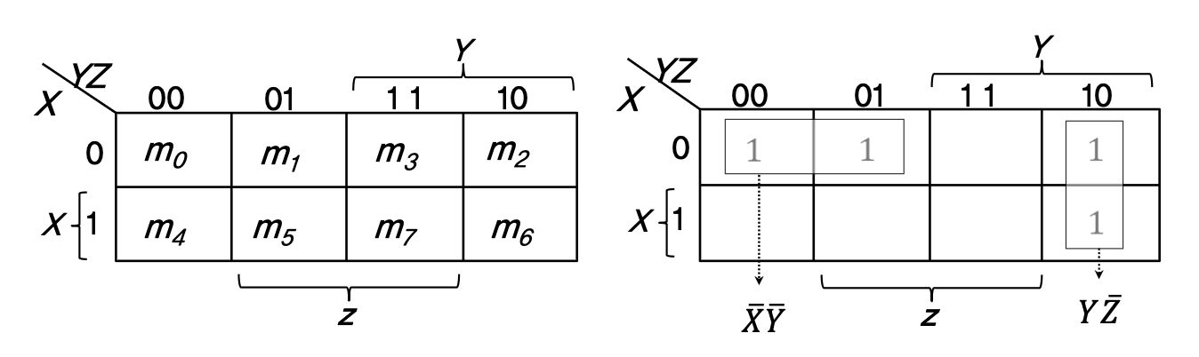 즉, 1) 최소항의 합 형태나 2) 최대항의 곱 형태로 간소화 된다.