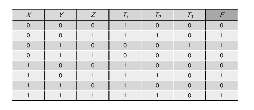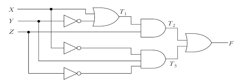 F = T2 + T3 = (X + ~Y)Z + ~XY~Z