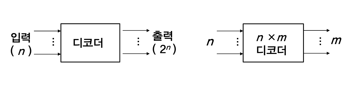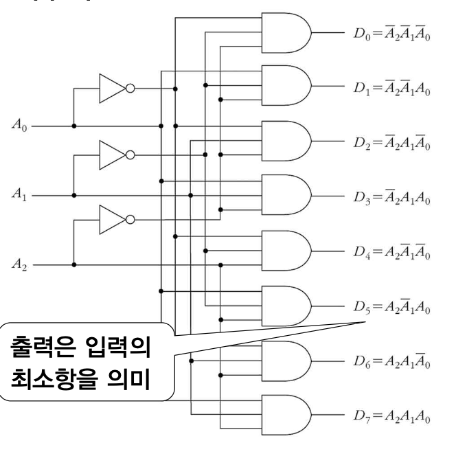 - 디코더는 n 개의 입력변수에 대한 2n 개의 최소항을 만든다.