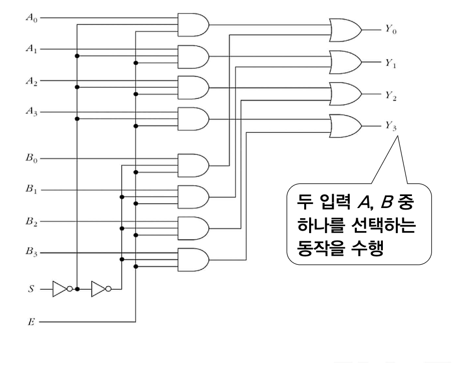 - 여기서 데이터 입력 E는 두 선택 신호 S1, S0 에 의해 선택적으로 출력된다.