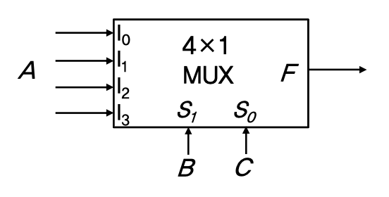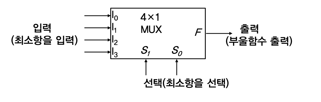 - 따라서 멀티플렉서의 선택선으로 입력변수의 최소항을 선택할 수 있으며,