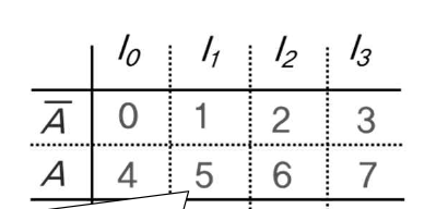 최소항 번호는 변수 A가 가장 왼쪽에 있기 때문에 보수형과 정상형이 반반씩 존재한다.