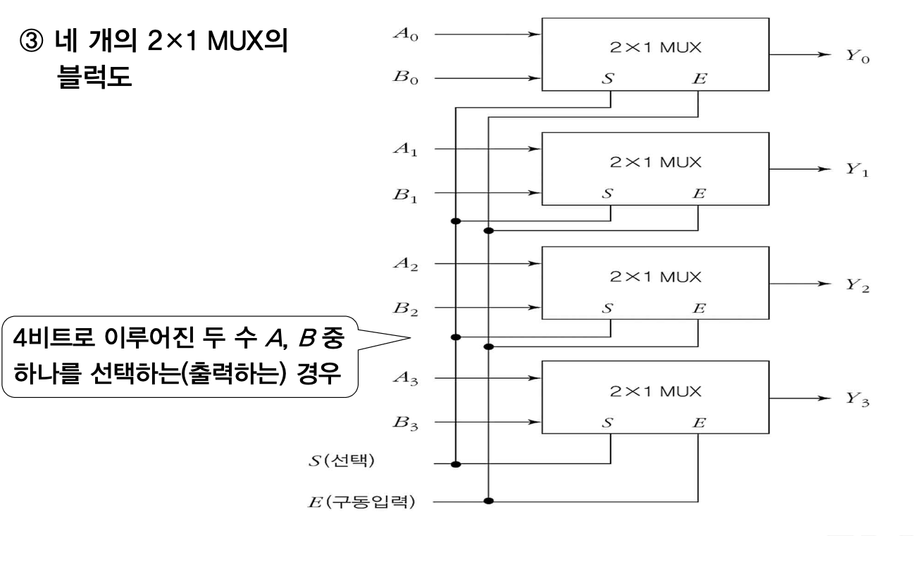 디코더를 확장한 것처럼 멀티플렉서도 확장이 가능함.