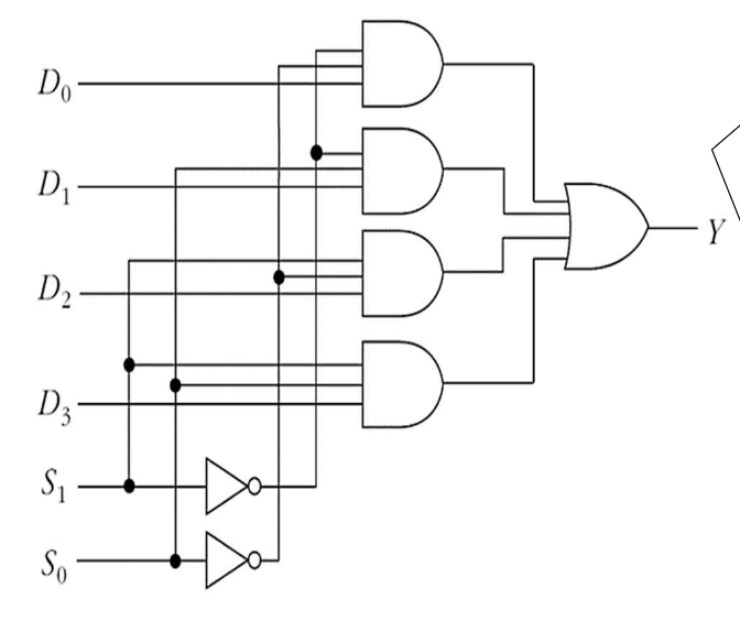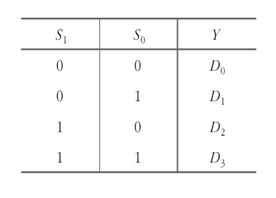 D0 ~ D3 중에 하나가 들어가서 나올 수 있는데, 그 선택은 S라는 선택 변수에 의해서 이루어진다.